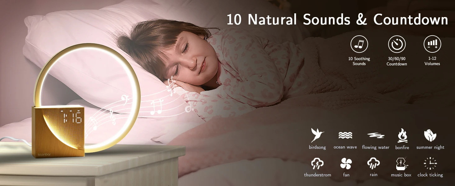 ✅ Sons Naturais: Há um total de 10 sons naturais para você escolher, incluindo: 01 canto de pássaro, 02 ondas do mar, 03 água corrente, 04 fogueira, 05 noite de verão, 06 tempestade, 07 ventilador, 08 chuva, 09 caixa de música , 10 horas marcando. No modo de som natural, você pode programar um tempo de reprodução de 30 minutos/60 minutos/90 minutos para o som selecionado.